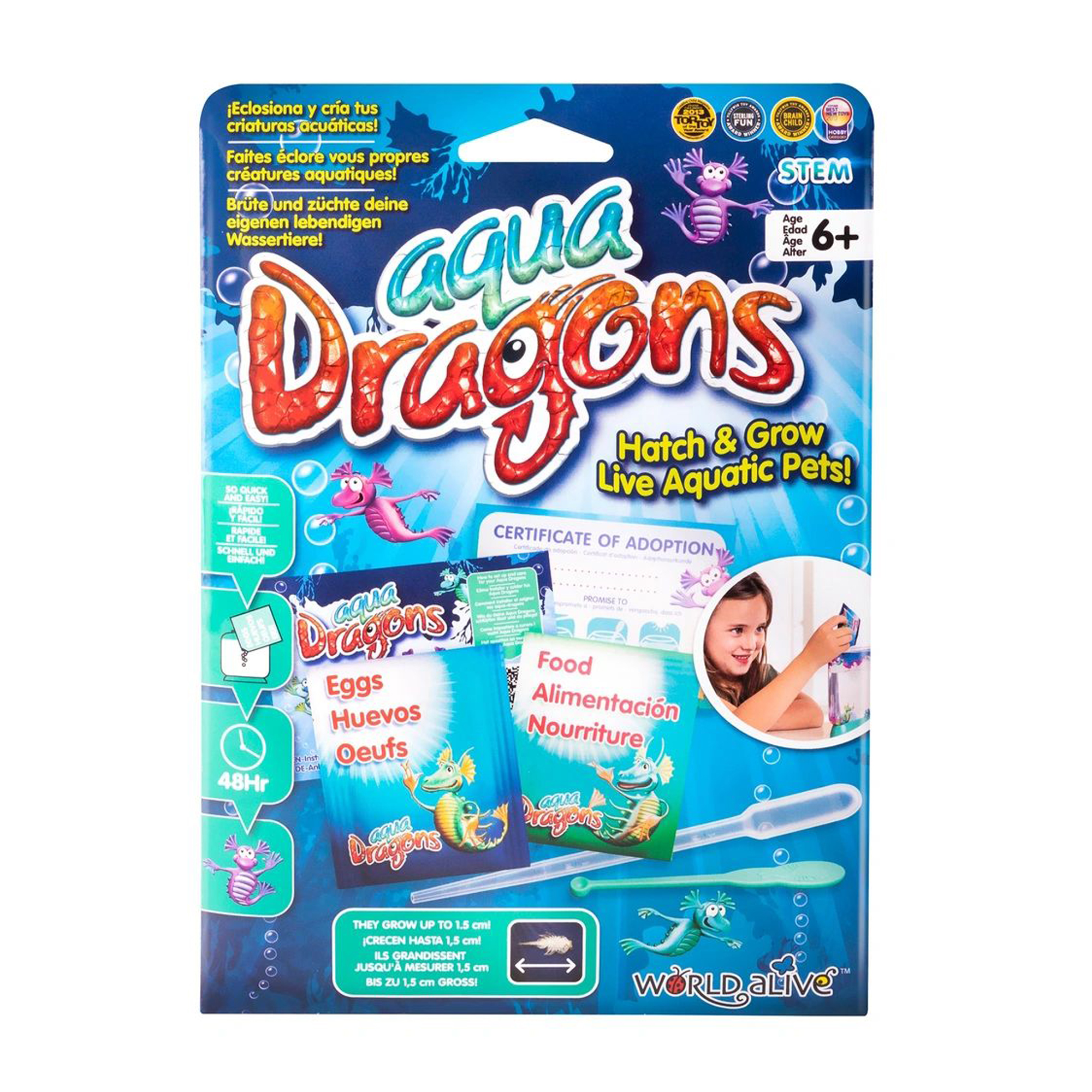 Lisa lihtsalt vesi ja juba 2–3 päeva pärast hakkavad vesidraakonid kooruma. Jälgi, kuidas nad ujuvad, toituvad, kasvavad ja isegi paljunevad. Nende eest hoolitsemine õpetab vastutust ning annab põneva ülevaate vee-elustikust ja elutsüklitest. See komplekt sobib suurepäraselt ka olemasoleva akvaariumi täiendamiseks või täitekomplektina suurematele Aqua Dragons komplektidele.