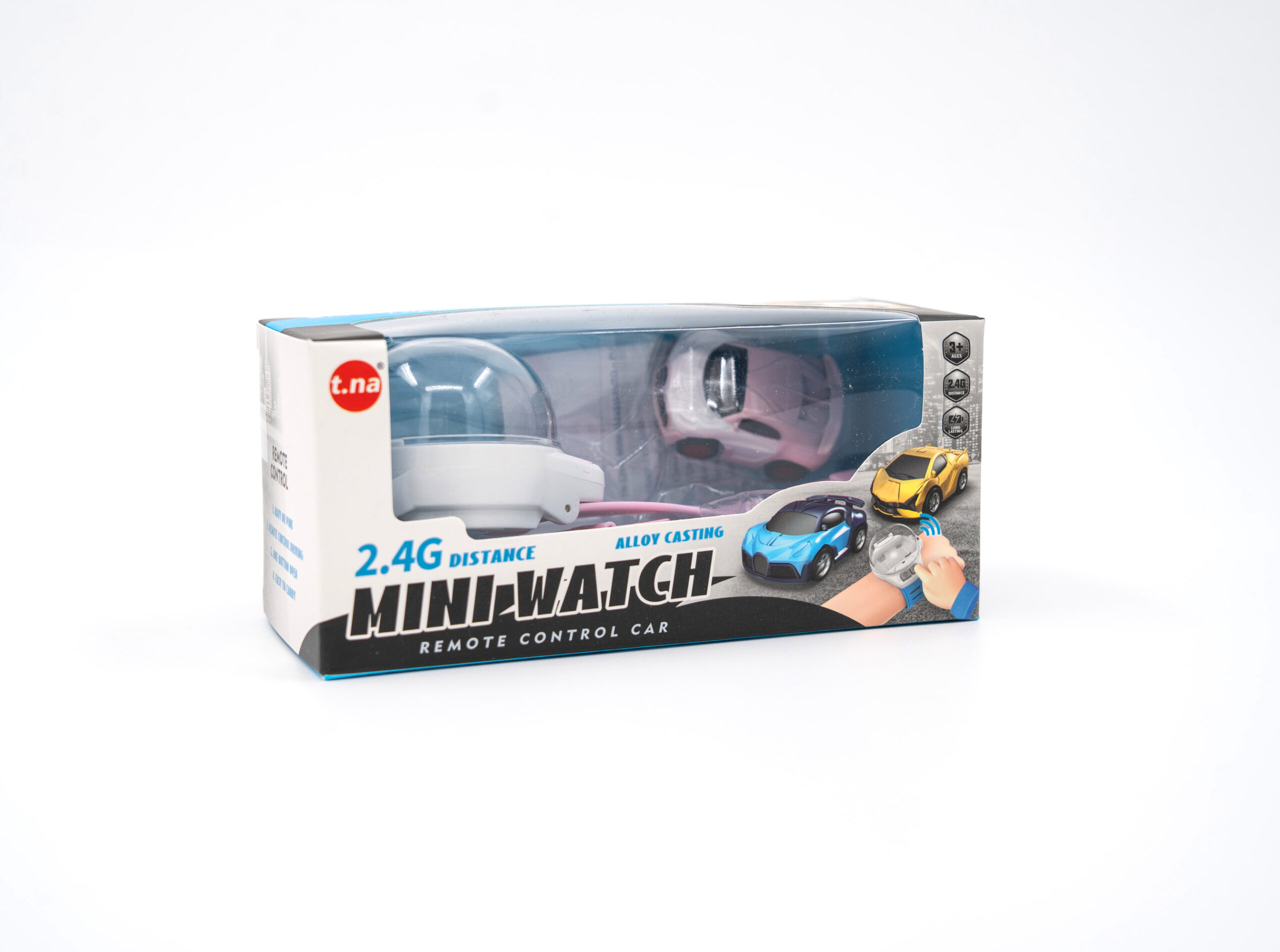 Avasta vahva käekellaga juhitav mini-auto! Lihtsalt vajuta kella küljel olevat nuppu, et eemalda kaitsekate ja võta auto välja. Lülita auto tagaküljel olev lüliti asendisse „ON“, ning see ongi mänguvalmis.
