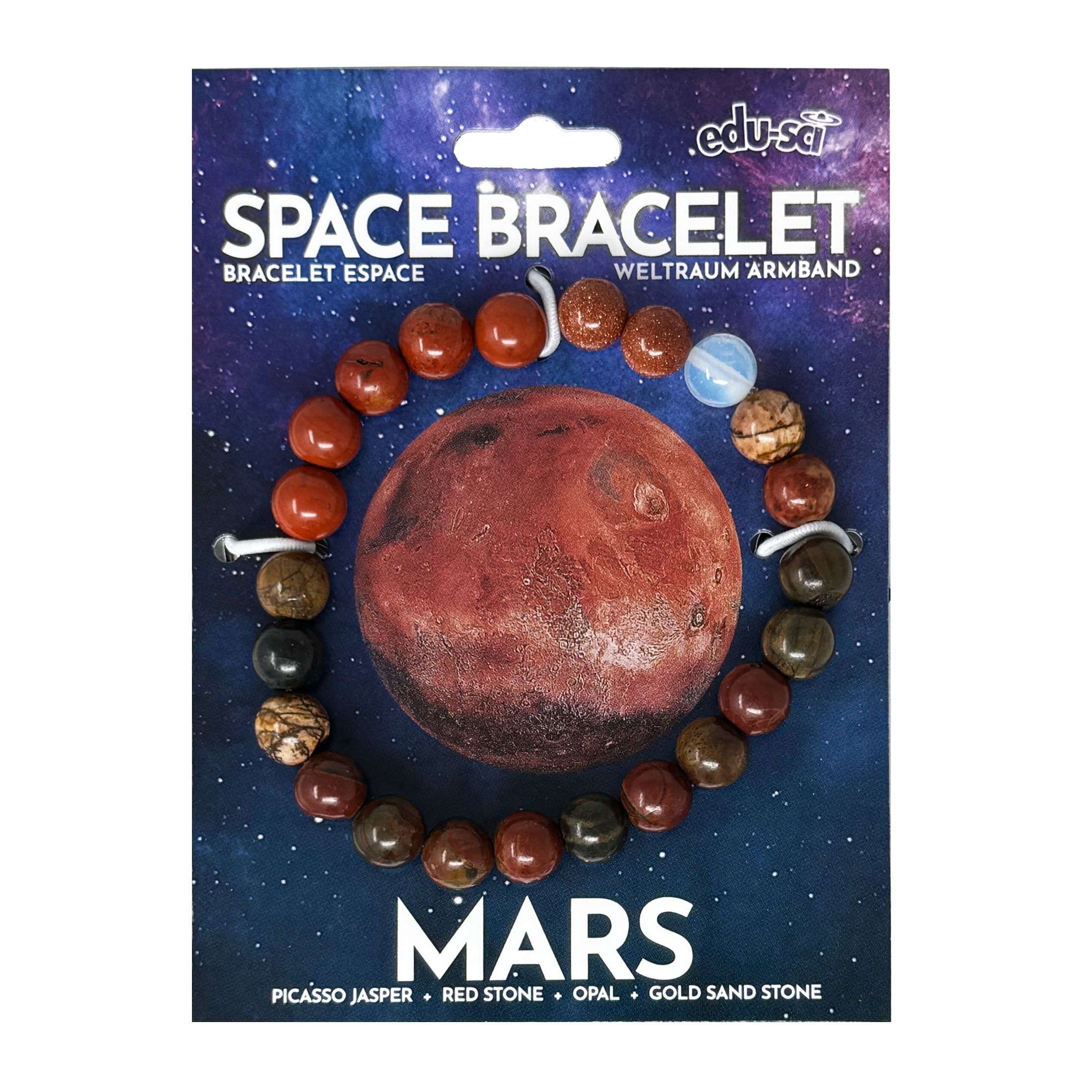 Kosmoseteemaline käevõru, mis kujutab Marssi poolvääriskividest helmeste abil. Hariv, stiilne ja ideaalne kingitus teadushuvilisele lapsele või täiskasvanule.