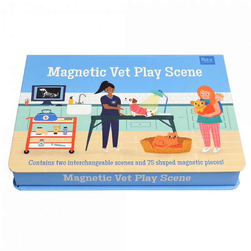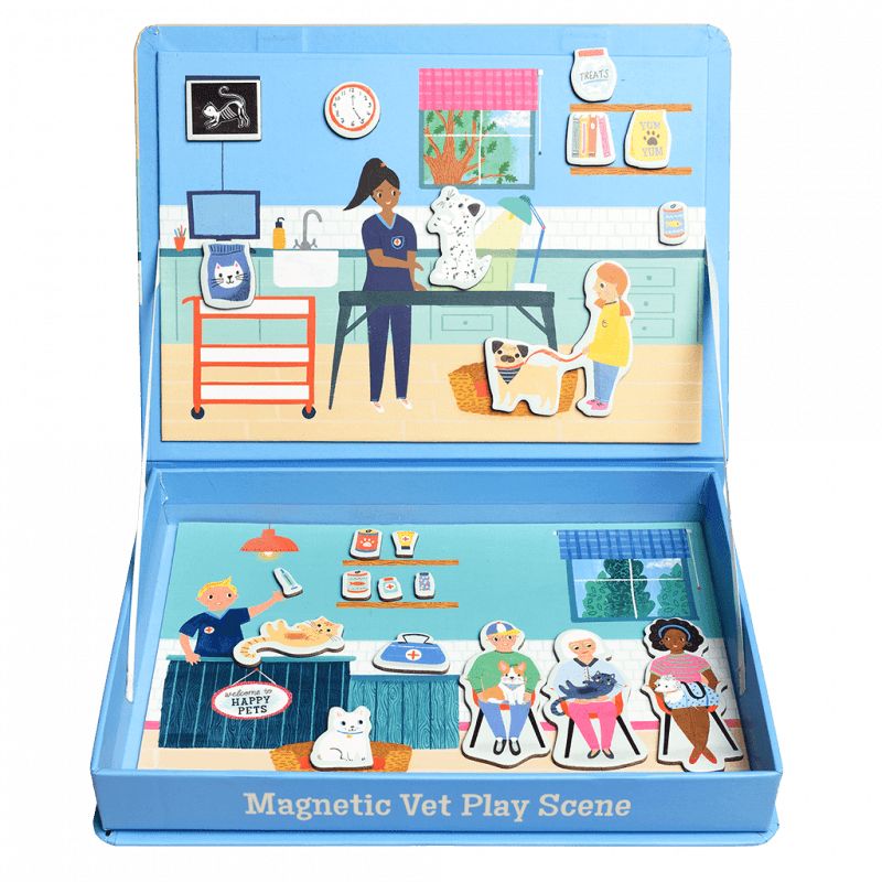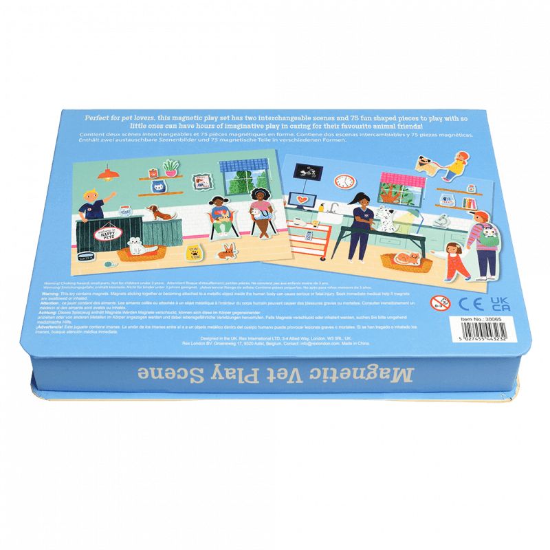 Täiuslik komplekt igale väikesele loomasõbrale! See armas magnetiline mängukomplekt sisaldab kahte vahetatavat loomakliiniku mängustseeni ning 75 erinevat magnetit, sealhulgas lemmikloomad, inimesed ja veterinaarvarustus. Lapsed saavad tundide kaupa loovalt mängida ja hoolitseda oma lemmikloomade eest, olgu selleks haige koer või köhiv kass. Mäng arendab kujutlusvõimet ning pakub põnevat rollimängu võimalust väikestele loomaarstidele.